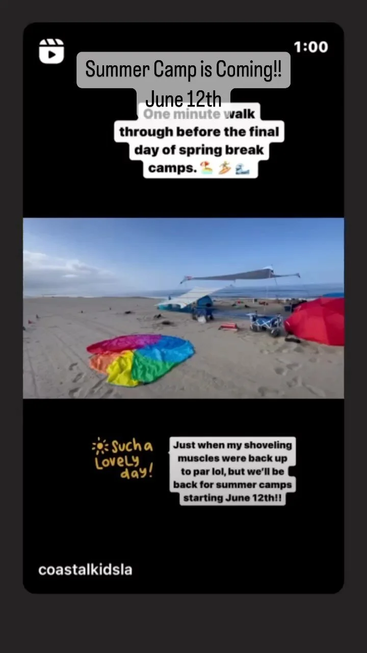 Summer Camps starting up on the beach in Santa Monica (Lifeguard Tower 26) June 8, 2026. Early bird rates end May 1st. Hours 9-2pm with extended day options. Ages 2 and up. Seal Beach location opening Summer 2026. We are open most school holidays and breaks throughout the year and are all outdoors. We accept private groups. We also provide beach birthday party setups.